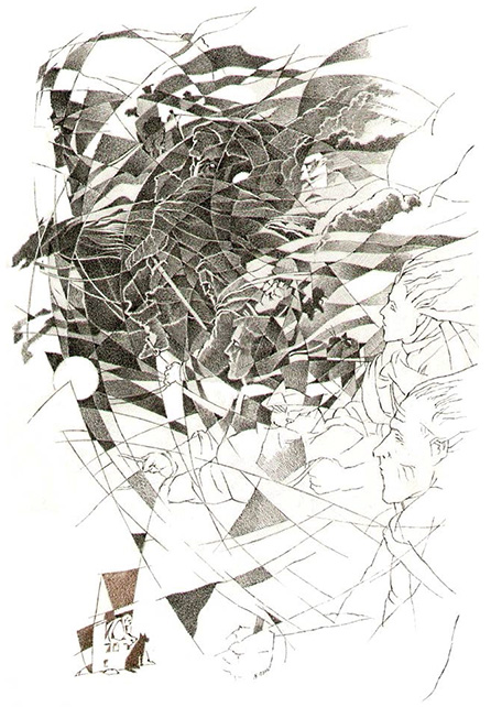 Так летели в молчании долго, пока и сама местность внизу не стала меняться. Печальные леса утонули в земном мраке и увлекли за собою и тусклые лезвия рек. Внизу появились и стали отблескивать валуны, а между ними зачернели провалы, в которые не проникал свет луны.