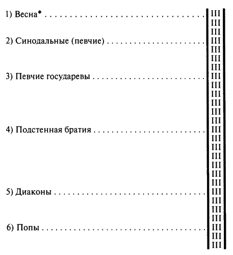 На реестре и двух отдельных списках с графою для числа участников процессии порядок ее был обозначен таким образом: