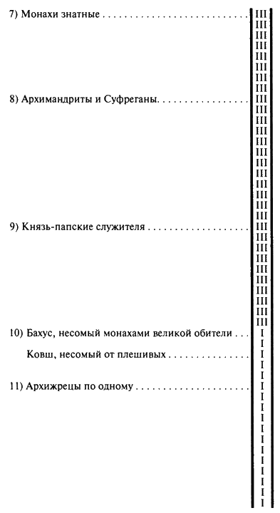 6) Караул для осмотру с одною духовною особою (то есть с членом шуточного собора. — М. С.).
