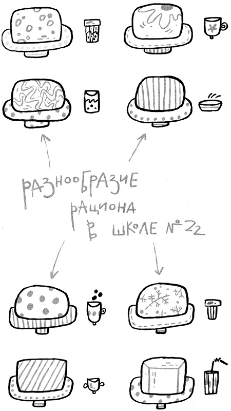 Мы с ним отсели подальше от всех, чтобы поговорить с глазу на глаз. Обсудить, что мы теперь со мной будем делать. Я ел и рассматривал на стенах картины: «Удмуртские комбайнёры», «Перспективный агроном», «Колхозник, будь физкультурником!», «Хлеб — всему голова», «Октябрята — дружные ребята» и многие другие.