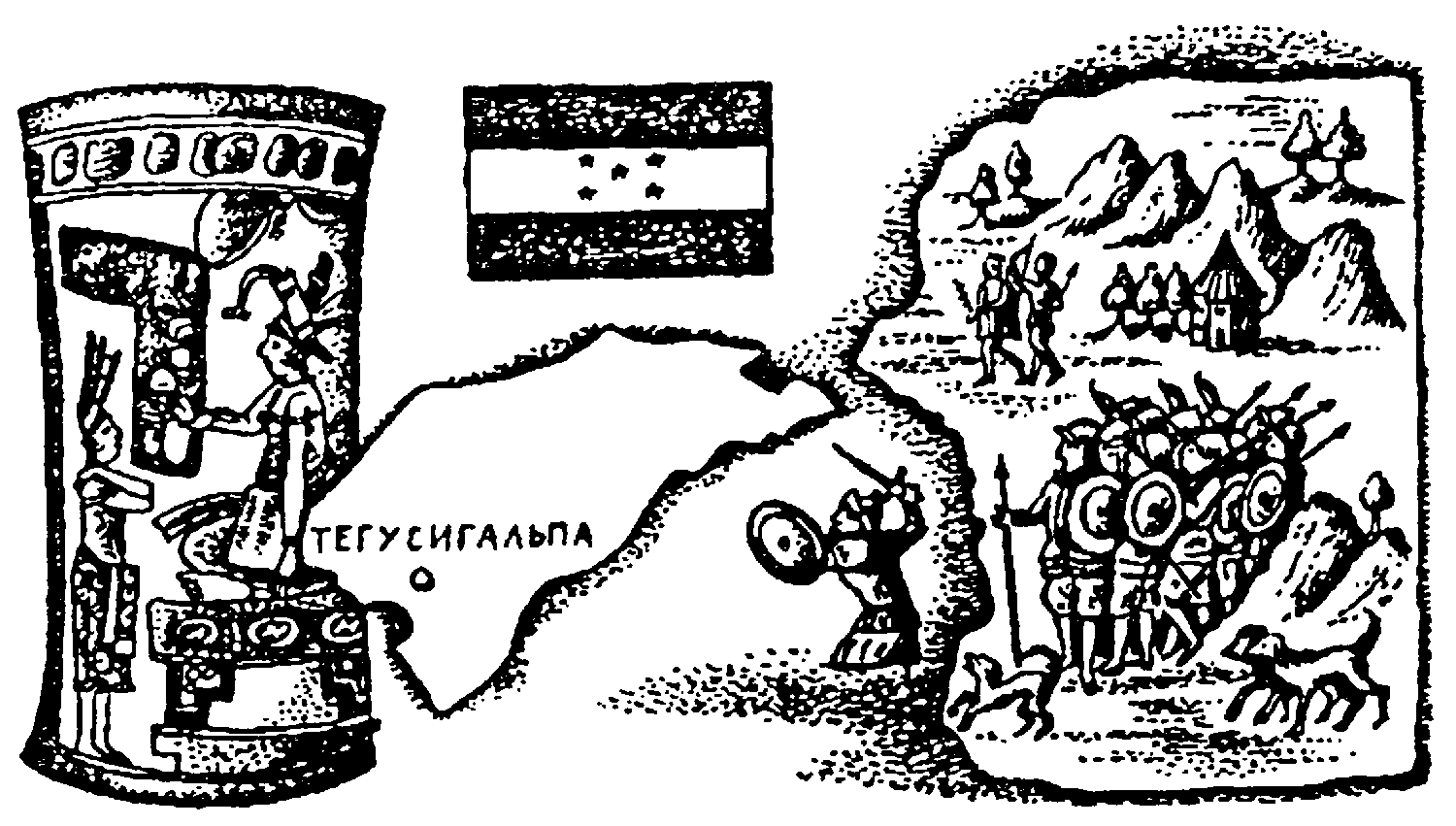 В центре страны, в горах, еще сохранились индейские племена. В районе руин индейского города Копан еще живут племена майя, построившие его во 2 в. Особенно внушительны сохранившиеся храмы и каменные колонны, украшенные рельефами и иероглифами.