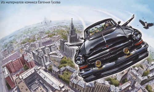 Но вот на подмогу силам добра явилась «Черная молния» (2009), где супергерой на летающей комике-машине «ГАЗ-21» останавливает суперзлодея-олигарха, обосновавшегося на руинах госмашины и пробуривающего Москву в поисках алмазов.