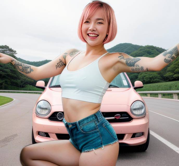 Водитель Porsche тоже вышел из своей машины. К моему удивлению она была девушкой. Но её внешний вид был необычным: розовая прическа в форме гриба, белая футболка с мультяшным рисунком и дырявые джинсовые шорты. Её серьги были в виде двух черепов, а браслет и ожерелье — в виде серебряных крестиков.