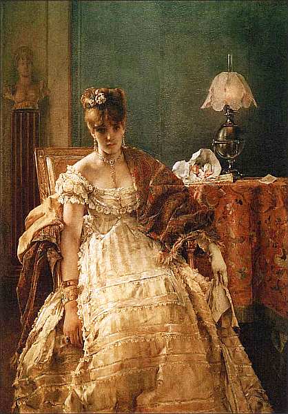 Блестящий представитель бельгийского академизма Альфред Стевенс много лет прожил в Париже и только незадолго до смерти возвратился на родину. Французская живопись оказала решающее влияние на манеру письма и выбор тематики произведений художника. Он завоевал большую популярность у публики и критики работами, посвященными яркой столичной жизни, изображениями красивых и меланхоличных женщин, молодых людей. Иногда мастер обращался к пейзажам, создавал аллегорические полотна.