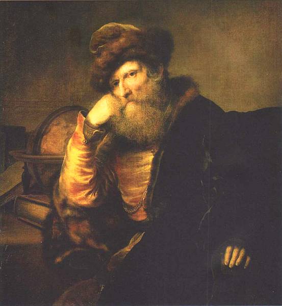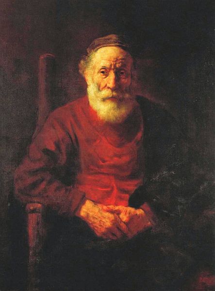 В искусстве знаменитого голландского живописца Рембрандта в 1650-е центральное место занимал новый, ранее неизвестный в европейской живописи тип портрета-биографии. Моделями художника часто служили пожилые люди, воплощавшие жизненную мудрость, на чью долю выпали горестные испытания. Это десятилетие стало вершиной мастерства Рембрандта как портретиста. Через величавое спокойствие художник передает психологическое состояние пожилого человека, его переживания и раздумья. Особый живописный рембрандтовский свет и мягкий полумрак позволяют ощутить его развивающимся во временном потоке, который связывает прошлое, настоящее и будущее. Лицо и руки старика, форму которым художник придавал не только кистью, но и своими пальцами, кажутся озаренными неким духовным внутренним светом. Образ, созданный мастером, стал олицетворением стойкости и принятия своей участи.