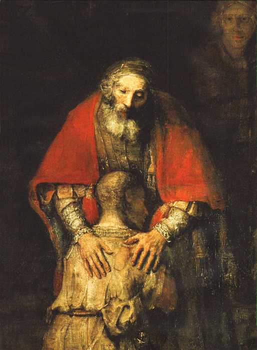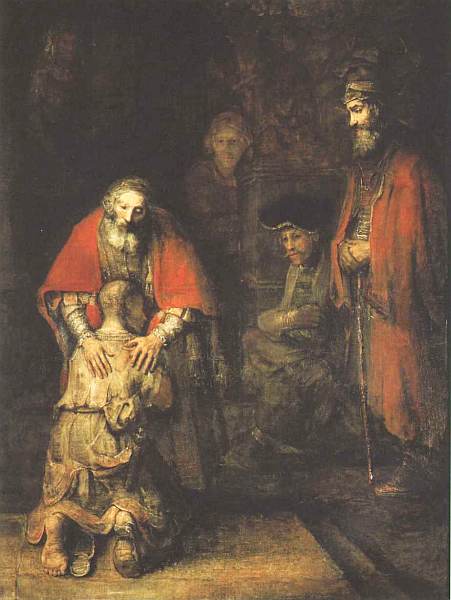 Одной из вершин творчества великого нидерландского художника считается картина «Возвращение блудного сына». Она была написана в последнее десятилетие жизни мастера, когда он был уже немощным, старым и нищенствовал, ведя полуголодное существование. До этого Рембрандт неоднократно обращался к сюжету «блудного сына» в своих графических работах. Темой для написания картины послужила известная евангельская притча, рассказывающая, как после долгих скитаний блудный сын вернулся с несбывшимися надеждами к покинутому им когда-то отцу. Живописная поверхность полотна буквально излучает тепло рембрандтовской палитры, мерцающая светотень подчеркивает фигуры главных героев. В образах склонившегося старика и его коленопреклоненного сына живописец выражает сложнейшую гамму чувств: раскаяние и милосердие, безграничную любовь к своему ребенку и горечь позднего прозрения. В картине «Возвращение блудного сына» психологический талант Рембрандта раскрылся в полной мере, ведь в нее он вложил весь свой творческий опыт.