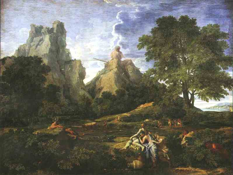 Никола Пуссен — крупнейший французский художник XVII века, яркий представитель классицизма. Живя в Италии, он изучал античное искусство и преклонялся перед красотой, четкостью и гармоничностью его форм. «Пейзаж с Полифемом» относится к так называемым классическим пейзажам. По устоявшейся традиции живописцы почти не запечатлевали природу с натуры, используя зарисовки в мастерской. Пейзаж строился по определенной схеме: три плана акцентировались цветом.