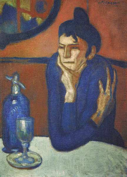 Представленная картина «голубого периода» была написана Пикассо во время повторной поездки в Париж. Тема одинокого, сидящего в кафе человека была заимствована мастером у Анри де Тулуз-Лотрека, но в работе испанца она звучит с особым драматизмом, выраженным в лаконичной форме. Одинокая женская фигура в голубом сидит за столиком в кафе перед штофом и рюмкой с абсентом. В позе любительницы абсента, выражении ее лица чувствуется отверженность. Смелая деформация в изображении фигуры, замкнутой в собственное объятие и задвинутой в угол, усиливает остроту образа. Стены грязновато-красного тона и голубоватый столик сжимают пространство вокруг женщины, замыкают ее в безысходном одиночестве. Пикассо наполняет образ внутренним напряжением, и суровая, холодная тональность полотна создает ощущение полной отрешенности от мира. Эта картина — не конкретный портрет, а обобщенный образ одинокого, смирившегося со своей судьбой человека.