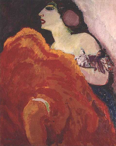 Небольшое зеленое пятнышко на белой подвязке усиливает воздействие локального красного цвета. Помимо кабаре персонажей многих своих полотен живописец находил в цирке Медрано на Монмартре. Непризнанный широкой публикой в начале карьеры, в 1920-е ван Донген стал успешным художником. Свои портреты ему заказывали известные артисты, писатели и даже политические деятели.