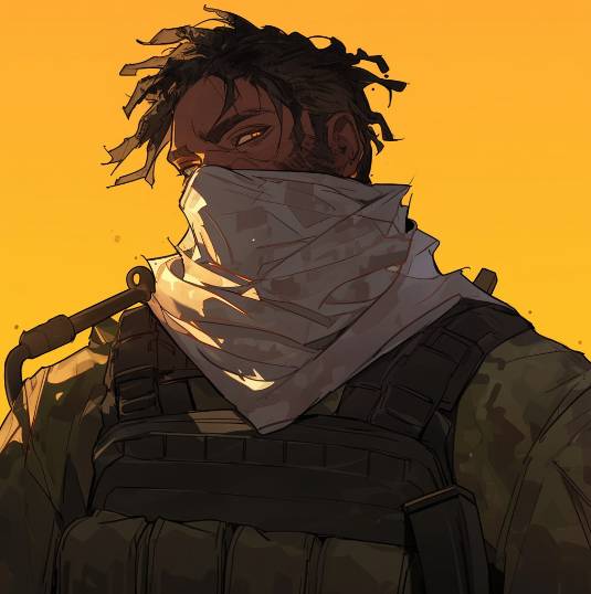Оказывается, я привлек чье-то внимание. Ко мне подошел высокий и мускулистый мужчина, чье обмундирование фэнтезийным никак не назвать. Смуглокожий, с дредами и белым платком на лице, но это не так интересно, как военная форма и тактическая разгрузка. Он смотрит на меня, разглядывая ну слишком пристально.