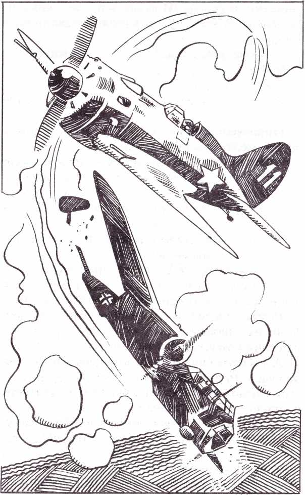 Но «ястребок» с налету ударил своим винтом по рулю бомбардировщика и перерубил фашисту хвост — словно острым мечом отсек.