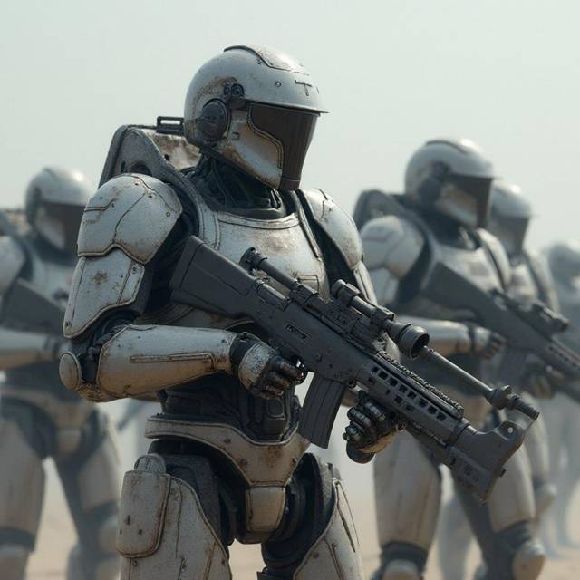 Заскользили человекоподобные андроиды с автоматами. Разной высоты и размеров, закованные в огнеупорный пластик и керамит, боевые роботы. Война в Миранде показала, что не всегда можно обойтись колёсами и гусеницами. Собственно, андроиды уже были разработаны и хранились в своих ячейках на складах. Было принято решение не применять их в боях, не показывать широкой публике и не пугать лишний раз. Да и преимущества их перед бойцам-людьми были ограничены.