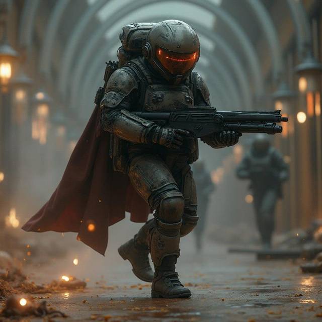 Да, я офицер, адмирал Космофлота, я умею управлять кораблями и вести космические бои, в том числе и в составе эскадры, но Космодесантник — это я и про меня. Я просто сменил коня и шашку, на броню, экзоскелет, рельсотрон, нож космодесанта и бебут.