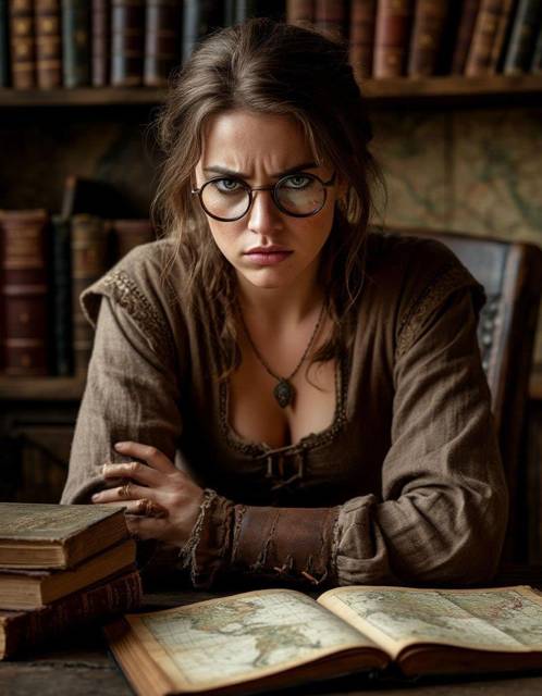Комнатушка, та, куда она скрылась, чем-то неуловимо смахивала на каморку, которую мне Тихон показывал, ну, типа их местная библиотека или архив, фиг поймёшь. Только вот загадочной двери с резным глазом тут не наблюдалось, просто голые, грубо отёсанные стены. Посередине здоровенный, видавший виды дубовый стол, заваленный так, что ножек почти не видно, а на нём всё книги в потёртых кожаных переплётах, какие-то потрёпанные свитки, пыльные фолианты, явно посвящённые сельскому хозяйству. В воздухе висел густой запах старой бумаги, пыли и, кажется, немного кислой капусты или чего-то столь же въедливо-деревенского. Не самый приятный букет, скажу вам.