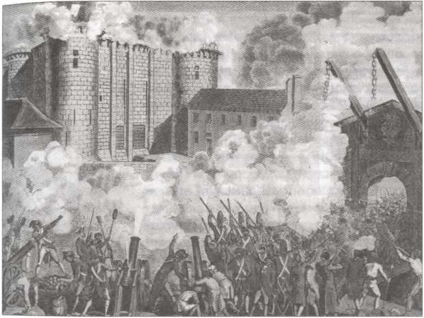 Штурм Бастилии. Цветной офорт П. Ж. Ламини