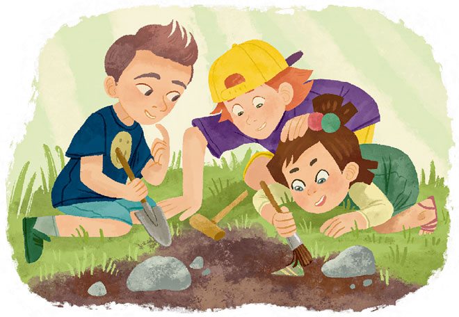 — У нас дома есть чудесная книга о раскопках. Настоящее руководство! Там объясняется, как нужно работать с картами, что можно найти под землёй и, главное, как правильно всё это делать. Пойдёмте домой, успокоим всех бабушек, вместе почитаем и обсудим, как действовать дальше.