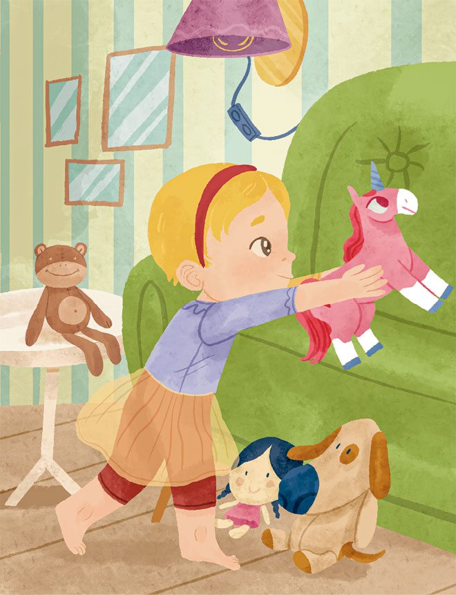 Девочка бегала по комнате и раскладывала игрушки, стараясь подготовить самые интересные. На диване в зале она аккуратно положила своего любимого единорога, которого, правда, обычно никому не давала. Но сегодня — особые обстоятельства.