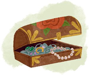 Мама направилась в детскую и вдруг заметила у двери в свою комнату открытую шкатулку с драгоценностями.