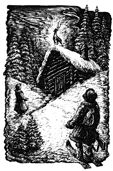 Вскорости умерла бабка… Остался Илюха один. — одинешенек, сам большой, сам маленький. Тут, конечно, похоронные старушонки набежали, покойницу обмыть, обрядить, на погост проводить. Они — эти старушонки — тоже не от сладкого житья по покойникам бегают. Одно выпрашивают, другое выглядывают. Живо все бабкино обзаведенье по рукам расхватали. Воротился Илья с могильника, а в избе у него голым-голехонько. Только то и есть, что сам сейчас на спицу повесил: зипун да шапка. Кто-то и бабкиным пером покорыстовался: начисто выгреб из решета. Только три перышка в решетке зацепились. Одно беленькое, одно черненькое, одно рыженькое.