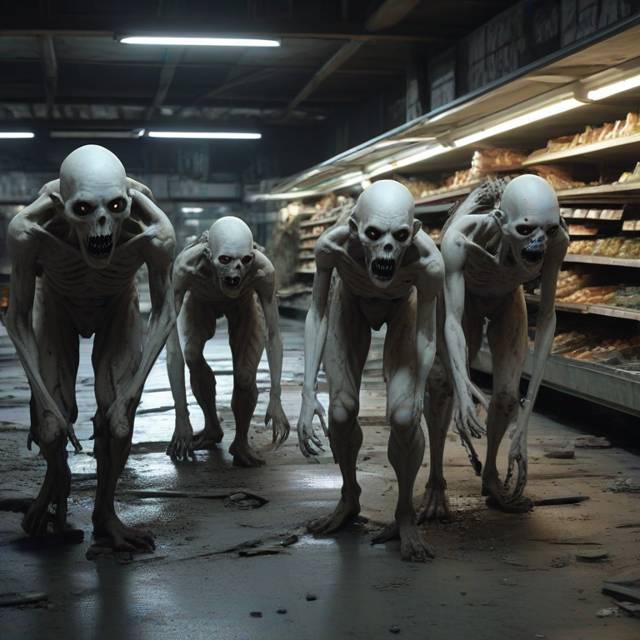 Перейдя с бега ни тихий шаг, крадущийся мальчуган пошёл дальше, и вскоре наткнулся на трёх бледнокожий человекоподобных тварей с горящими в темноте красными глазами. Не обращая внимания на незваного гостя, троица пожирала какого-то мёртвого бедолагу. Рассчитывая убраться по-тихому, пока его не заметили, мальчик попятился назад, но случайно наступил на валявшуюся на полу стеклянную бутылку. Три пары светящихся глаз тут же оказались направлены на Нила. Поняв, что его заметили, мальчик развернулся и бросился бежать. Выскакивать на улицу он не стал, не сомневаясь, что на открытой местности его настигнут за считанные секунды. Бегая от монстров между пустыми рядами, Нил вскоре оказался в ловушке. Увидев в конце ряда ещё одного мутанта, бросившегося в его сторону, зажатый с двух сторон мальчик не растерялся. Прежде чем смертоносные твари успели полакомиться его плотью, Нил быстро вскарабкался на стеллаж. Спрыгнув с другой стороны и выбравшись из лабиринта пустых полок, мальчик прошмыгнул в первую попавшуюся дверь.