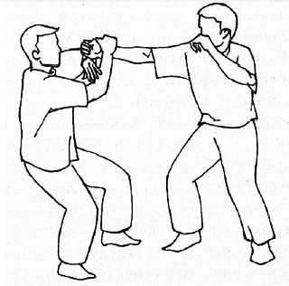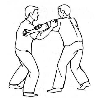 Вам необходимо научиться не отступать, а оставаться на месте и далее идти вперед. Естественно, что это нелегко, однако как только вы начнете это делать, то обнаружите, что вашему напарнику станет намного сложнее атаковать вас. Вам лее, наоборот, будет легче перехватить его кулак. С ростом мастерства учитесь переходить от захвата кулака к загибам-заломам всей руки, используя для этого вспомогательные удары (в голову, в пах и др.). Для освоения техник воздействия на руки используйте непрерывные загибы-заломы расслабленной руки напарника.