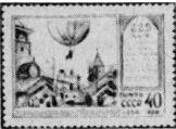 Есть у нас и марка с ошибкой, в которой виноваты не почта и издательство, а историки. В исторической литературе не раз упоминалось о полете Крякутного на воздушном шаре в 1731 г. Наша почта в 1956 г. выпустила марку «225-летие первого в мире полета на тепловом аэростате изобретателя Крякутного». О содержании марки в каталоге сказано: «Первый подъем Крякутного» на изобретенном им аэростате (по картине Г. Савицкого «Первый полет на воздушном шаре в 1731 г. в Рязани», 1924). Однако в 1958 г. была опубликована работа В. Ф. Покровской «К вопросу о поправках в рукописных текстах», убедительно доказавшая, что история с Крякутным — плод одной из многочисленных проделок известного фальсификатора А. И. Сулукадзева, не раз пытавшегося «водить за нос» различными мистификациями историков. В книге академика Д. С. Лихачева «Текстология», выпущенной издательством Академии наук СССР в 1962 г., указано, что в отечественной истории не было человека по фамилии Крякутной. А марка (рис. 79) осталась в альбомах филателистов как свидетельство того, что бывают и подобные курьезы.