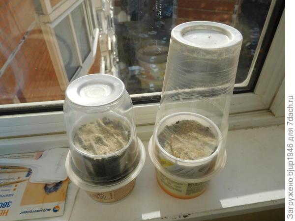И накрываем полулитровым одноразовым стаканом, после чего микропарнички отправляются на подоконник: