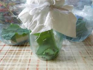 Поменял листья Душистого табака во всех трёх банках, добавил в каждую по 2 листа картошки и уехал на приём в поликлинику. Вернусь на участок и постараюсь продолжить опыт.