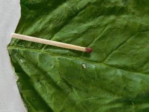 06.08 Последний жук жив, оставляет какие-то белые образования, если это яйца, то из них пока никто не вылупился. В листе несколько "следов, что его грызли" и одна маленькая дырочка порядка 1 – 2 мм.