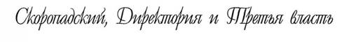 Гетман Украины Павел Скоропадский, лидеры украинской Директории Симон Петлюра и Владимир Винниченко на равне с прочими персонажами "Белой гвардии" так же являются героями романа Михаила Булгакова. Но они, в отличие от семьи Турбиных и ее друзей, существуют как бы в иной плоскости романа, им отведена роль непосредственных вдохновителей и руководителей тех событий, на фоне которых происходят действия "Белой гвардии". Эти герои не изображены в динамике, о них мы узнаем лишь по косвенным размышлениям да историческим описаниям. Данные герои являются фигурами неодухотворенными, но без них "Белая гвардия" существовать не может. По большому счету, и Скоропадский, и Петлюра, и Винниченко злые гении романа, непосредственные вершители судеб киевлян, к которым принадлежали и Турбины.