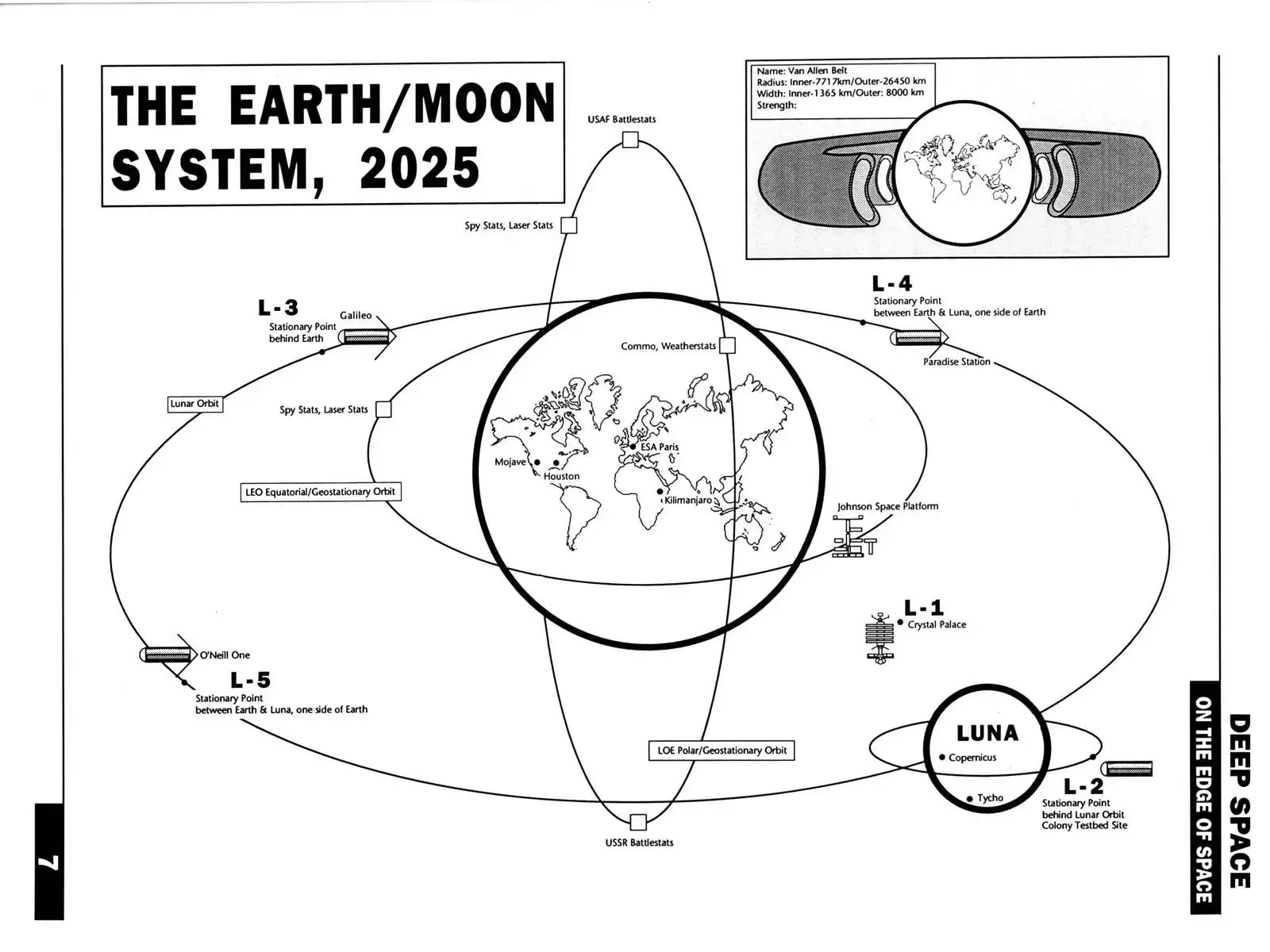 На момент фанфика — 2063, намного больше спутников, чем в 2025, давно созданы десятки космических фабрик для переработки ресурсов Луны. Например, большая часть фабрик Кироши находятся в космосе.