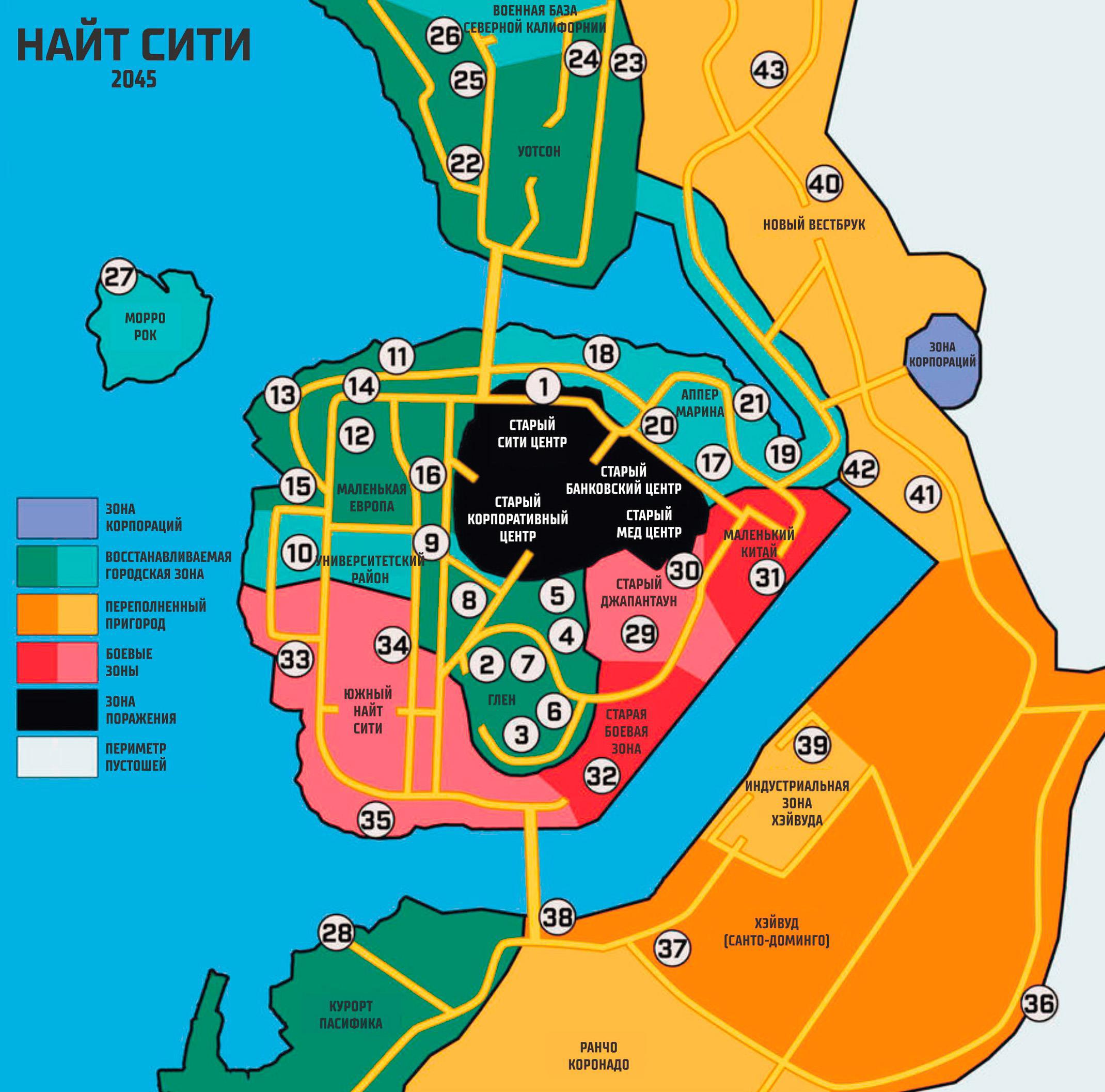 В моём фанфике город будет основан именно на карте из игры «Киберпанк 2077». Эта карта более подходит для описания группировок и влияния корпоратов. На ней происходили масштабные события, которые охватывали весь город, в отличие от небольших компаний в настолке. Кроме того, она мне больше нравится.