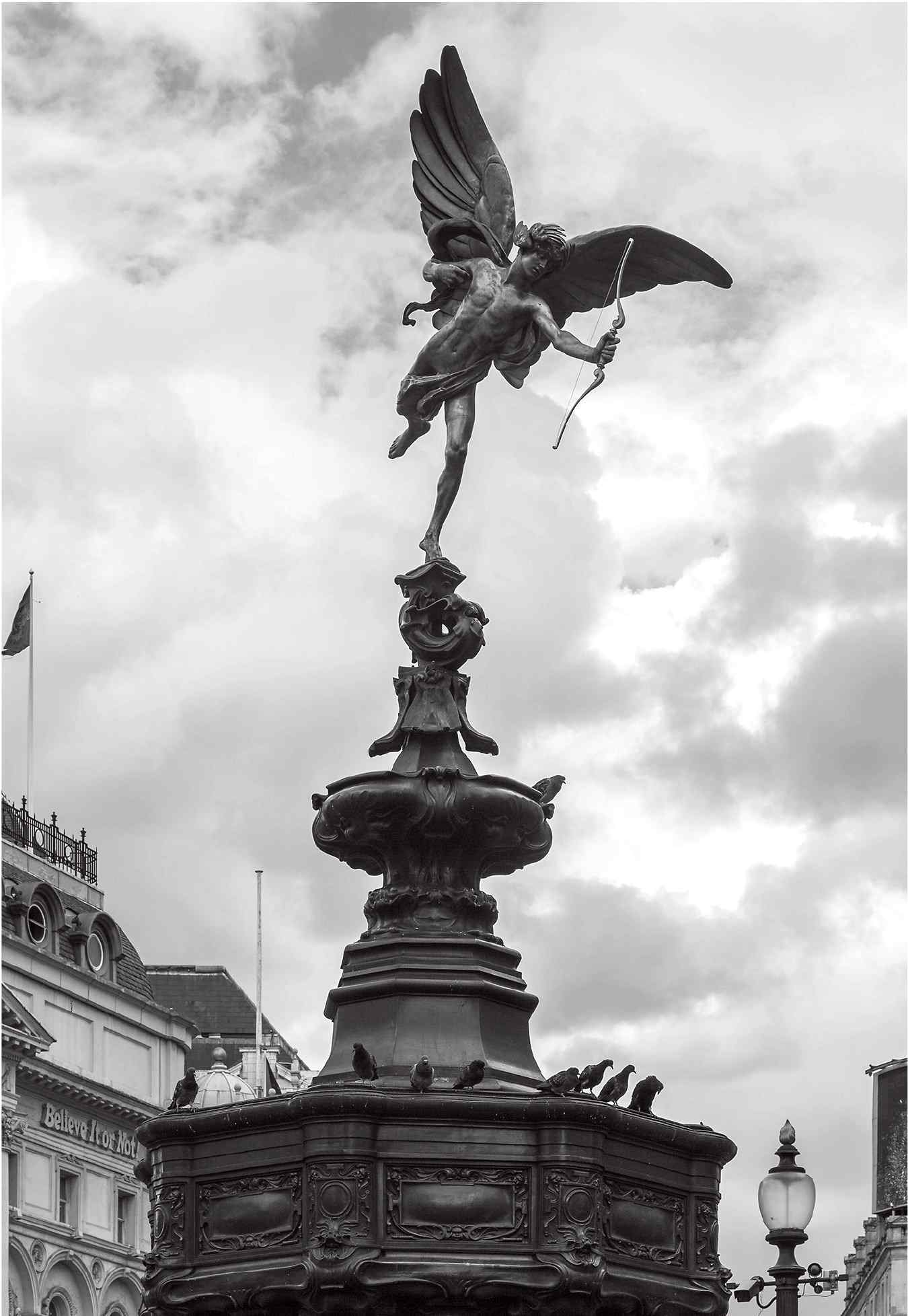 Все это происходило совсем недавно (Гилберт умер в 1934-м), и все же добросовестный автор «Очерков Лондона», из чьей работы почерпнут этот рассказ, признает некую долю неопределенности. Какой смысл вкладывал скульптор? Мы знаем, что он был противник «брючно-сюртучной» монументальной школы и с жаром убеждал комиссию принять иное решение памятника. Славу ему принесли мифологические персонажи, в частности, «Икар», и он явно увлекся творческими возможностями памятника, где от фигуры требовалась бы подобная же легкость. Его Эрот, едва касающийся ногой постамента — вариант скульптурной задачи, столь блестяще решенной Джованни да Болонья в его «Меркурии». Не следует ли нам заключить, что для художника в этом и заключался смысл работы, безотносительно символического значения или скрытых шарад, которые так волнуют иконолога?