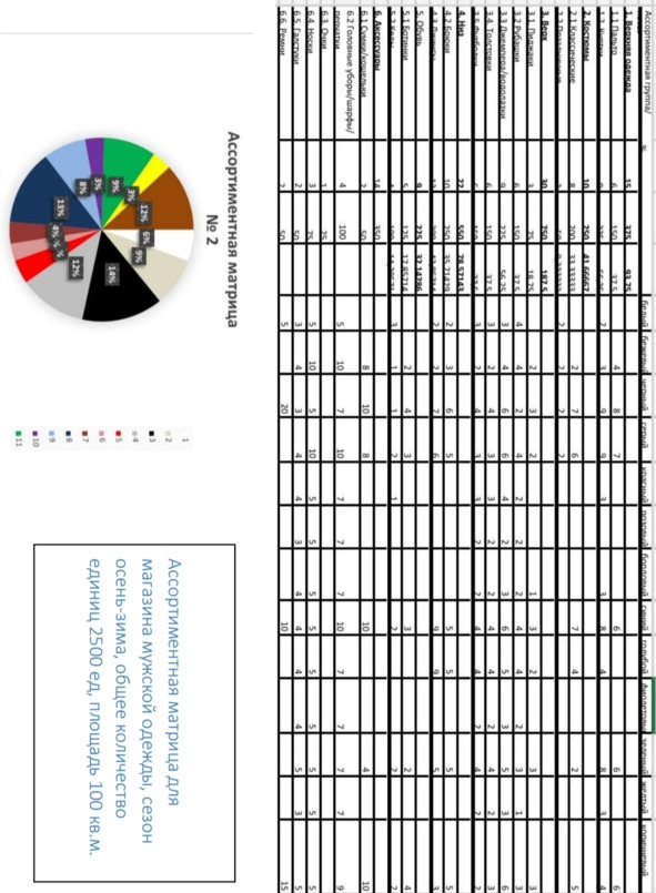 Далее рассмотрим 3 ассортиментные матрицы для женского, детского, мужского магазинов одежды с широким и глубоким ассортиментом (микс).