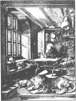 Иероним в своем кабинете за переводом Библии. С гравюры А. Дюрера.