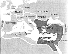 В 534 году франки покорили бургундов и объединили под своей властью всю территорию. Но последующие Меровинги были слабыми правителями, и к VII веку власть фактически перешла в руки майордомов, то есть "управляющих двором", выполнявших по сути функции премьер-министров. Один из них, Карл Мартелл (что значит "молот"), встал во главе Франкского войска в войне с мусульманами, которые захватили Испанию, перешли Пиренеи и начали угрожать самому сердцу Европы. Он разгромил их в битве при Пуатье в 732 году. К тому времени он по сути дела был уже королем, но не претендовал на этот титул. Однако его сын Пипин Короткий решил, что пришло время избавиться от ни на что не годного короля Хильдерика III, получившего прозвище Глупый. С согласия папы Захарии он принудил Хильдерика к отречению и монашеству. Затем он был помазан королем епископом Бонифацием, действовавшим по указаниям папы. Это имело огромные последствия для всей дальнейшей истории христианства, ибо сын Пипина Карл Великий стал величайшим правителем раннего средневековья, который стремился реформировать церковь и которого в сан императора возвел папа.