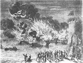 Увидев нападавших венецианцев, участники Четвертого крестового похода попытались разбить их флот, но им это не удалось.