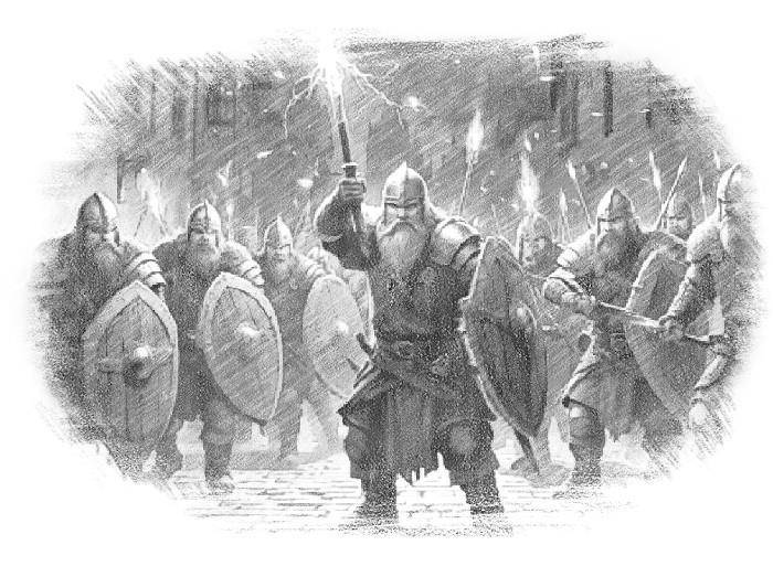 Я поднял с земли меч раненого воина и забрал у него щит, после чего встал в строй. На нас плотным строем шли гномы. И их явно было больше, чем нас.