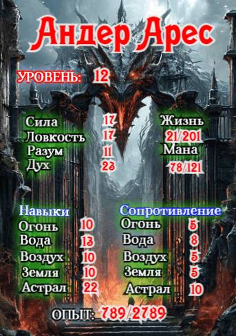 — «Так, значит, дух на единичку подрос. Интересно, за что именно он вырос? За то, что не бежал от битвы с заведомо проигрышным концом? Или за то, что не прогнулся под гнома, когда он мне палец оттяпать хотел? Вопрос без ответа… Так, что ещё? Астрал вырос аж на три единицы! Тут даже гадать не надо. Вампиризм это заклинание из астральной школы. А я им сегодня двух гномов упокоил. Опыт ещё подрос, но до следующего уровня ещё много. А, ну и маны на двадцать единиц стало больше».
