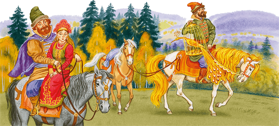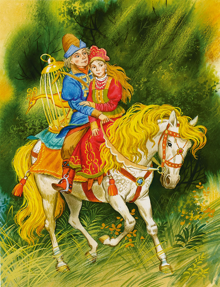 Вернулся Иван-царевич домой на коне златогривом, привёз отцу своему Жар-птицу, а себе – невесту, Елену Прекрасную.