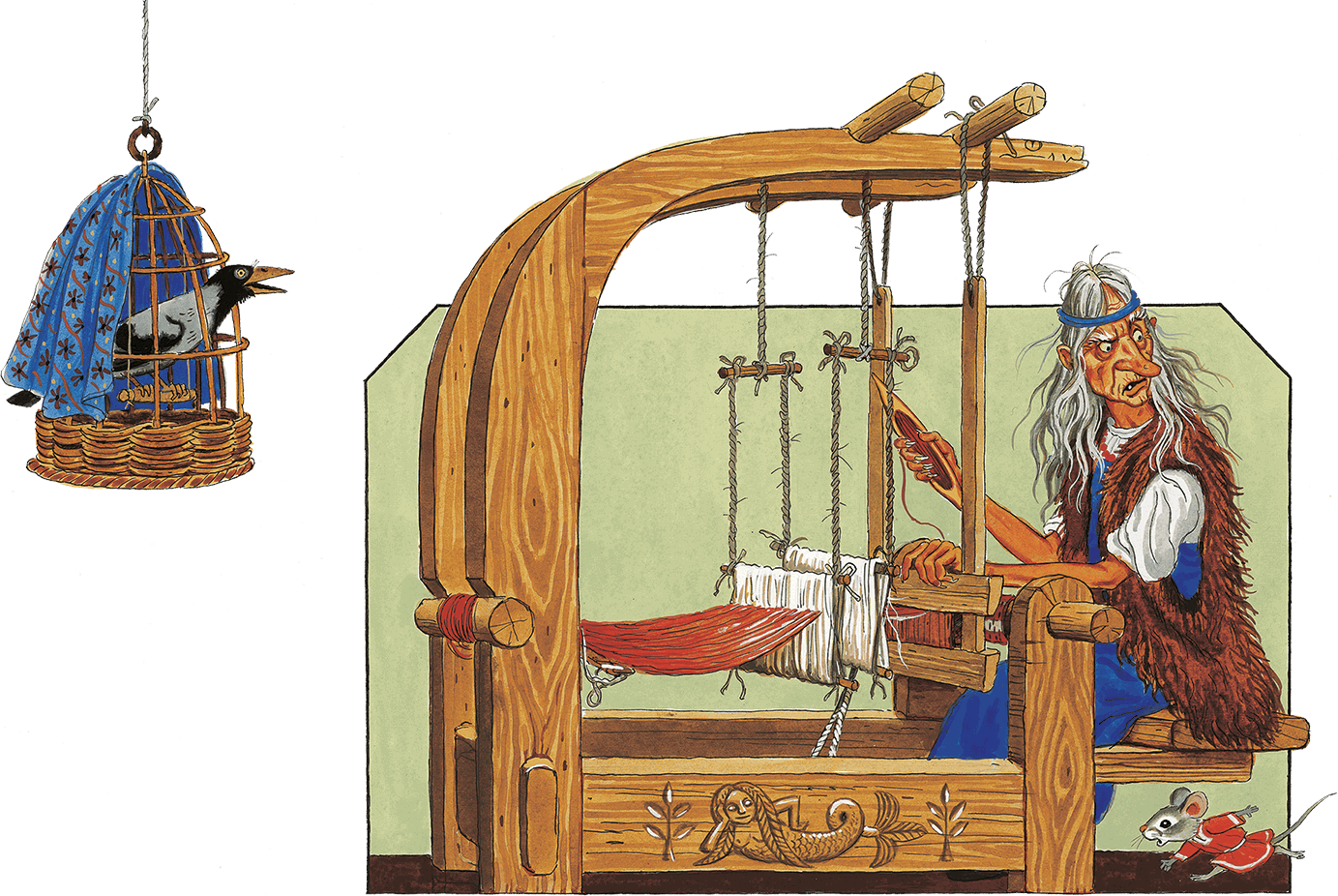 Вот девочка села за кросна[3]. Баба-яга вышла и приказывает своей работнице: