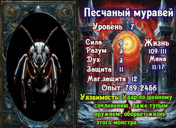 — Но торгуем мы не только травами, но ещё и ингредиентами, артефактами, органами, извлечёнными из тварей Пустоши, и… — сделал он паузу, — если Вы слышали глашатая, то уже знаете, что сегодня на продажу выставили песчаного муравья. Это мы привезли его сюда.
