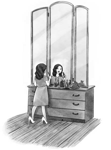 Дотрагивалась пальчиками до ткани платьев, ощущала фактуру струящегося прохладного шелка, невесомого крепдешина, теплой, чуть колючей шерсти, мягкого сукна. Выбирала самое красивое, ныряла в него, а потом долго рассматривала восхитительные, пахнущие натуральной кожей туфли. Выбрав подходящие, обязательно на высоком каблуке, надевала их прямо на свои белые носочки, подхватывала подол платья и, шаркая каблуками, перемещалась в длинный коридор между комнатами, где стояло трюмо с тремя зеркалами, на котором выстроились в ряд нехитрые флакончики маминых духов и помад.