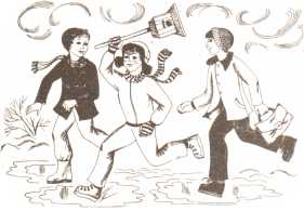 Поскорей оделся — и во двор... А там уже весь снег растаял. Вдруг на крыльцо рядом со мной красная бабочка села. Только я собрался ладошкой её накрыть, как подул ветер. Бабочка вспорхнула и полетела за забор на соседний двор.