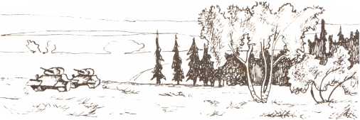 Вот и сейчас ребята забрались на курган, что высится за селом, и напряжённо прислушивались к орудийной стрельбе. Вдруг Димка Снегирёв посмотрел на просёлочную дорогу и глазам своим не поверил. Прямо к ремонтной мастерской медленно двигались два большущих танка.