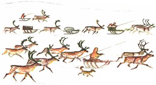 Не знаю, как вы, ребята, а я, когда смотрел на бегущие по снегам оленьи упряжки и пса с закрученным хвостом, устремлённого вперёд, подумал: «Перекочёвка — дело нешуточное. Олени съели весь ягель на полсотни километров вокруг, и вот всё огромное стадо движется на новые пастбища. Прямо-таки «переселение народов».