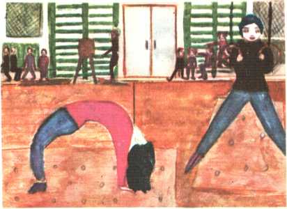 Вот ещё один рисунок, который мне понравился. Физкультурный зал. Не тот ли, мимо которого я только что проходил?
