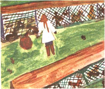 Так случилось, что прежде всего я попал на зооферму. Мне сразу вспомнился рисунок, который я видел на выставке в интернате. Уж очень всё здесь было похоже. Наверное, художник, рисовавший его, часто бывал на ферме.