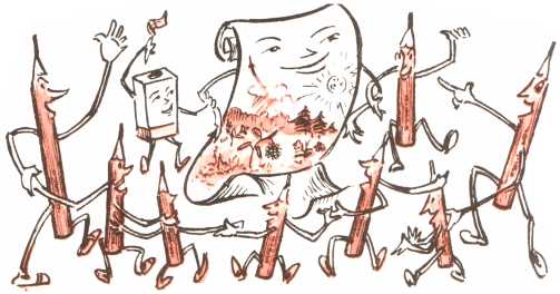 И красный карандаш вернулся к товарищам.