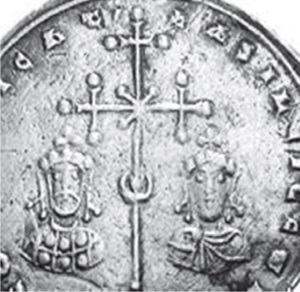 Как указывают энциклопедии по геральдике, в Византийской империи лилия была отличительным знаком принадлежности к королевскому роду еще до принятия его в этом качестве во Франции, т. е. до XII в. Что ж, отчасти это подтверждается изображениями на монетах и фресках. На монете Константина IX Мономаха он изображен с лилией-трезубцем в руках.